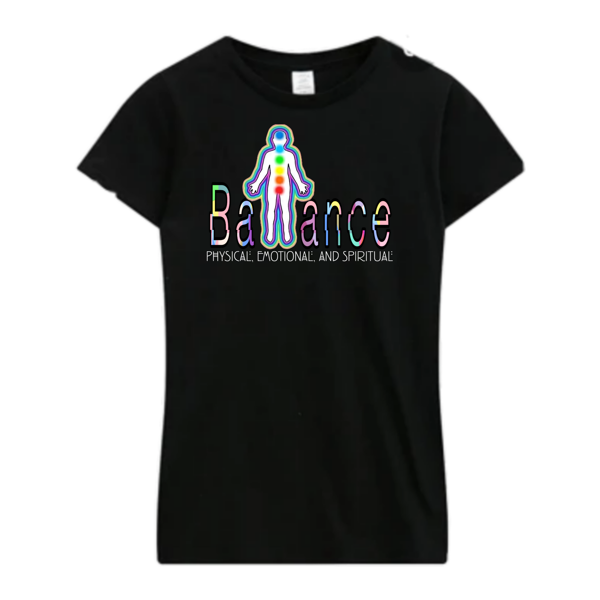 This exclusive SoulfulRags design features a radiant human silhouette illuminated with chakra-inspired energy centers — a bold symbol of grounding, healing, and awakened self-awareness. Wrapped in a vibrant aura and framed by the word Balance, it’s more than apparel… it’s a statement of your journey.